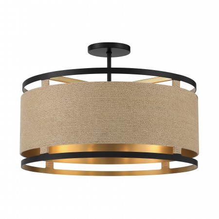 3 Light Semi Flush in Vintage Bronze with Etched White Glass